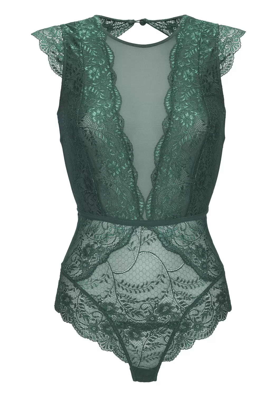 LASCANA Body aus Spitze und Mesh mit Knöpfen am Halsausschnitt und in der Taille. Im Schritt per Druckknöpfe zum öffnen, mit Baumwollzwickel. Reizwäsche. Verführerische Dessous. Spitzen-Dessous. Romantische Dessous. Verspielte Dessous. Aus 90% Polyamid, 10% Elasthan.